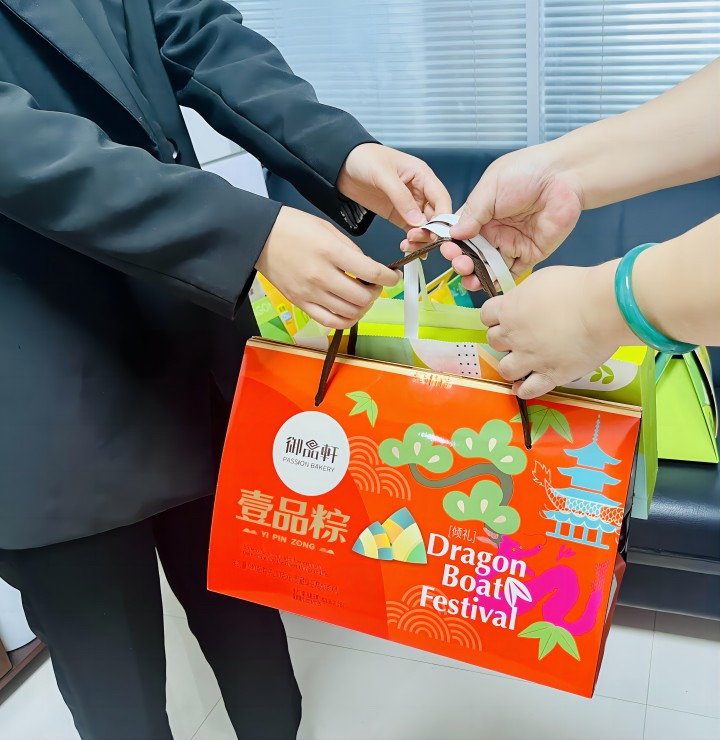 將一份份滿載著企業(yè)關懷的粽子禮盒送到員工手中